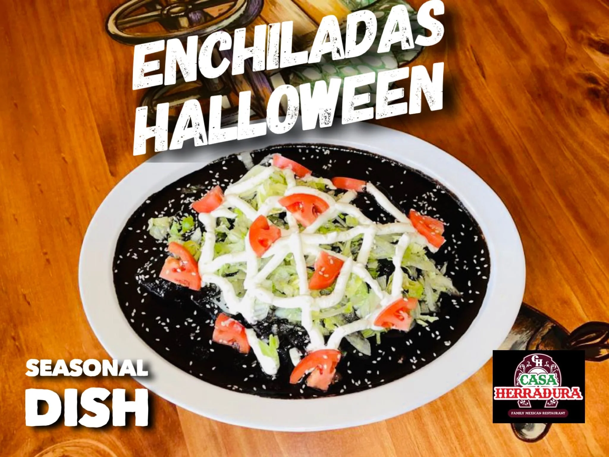 Casa Herradura Family Mexican Restaurant serves up spooky margaritas and enchiladas every day in October. Sip if you dare!